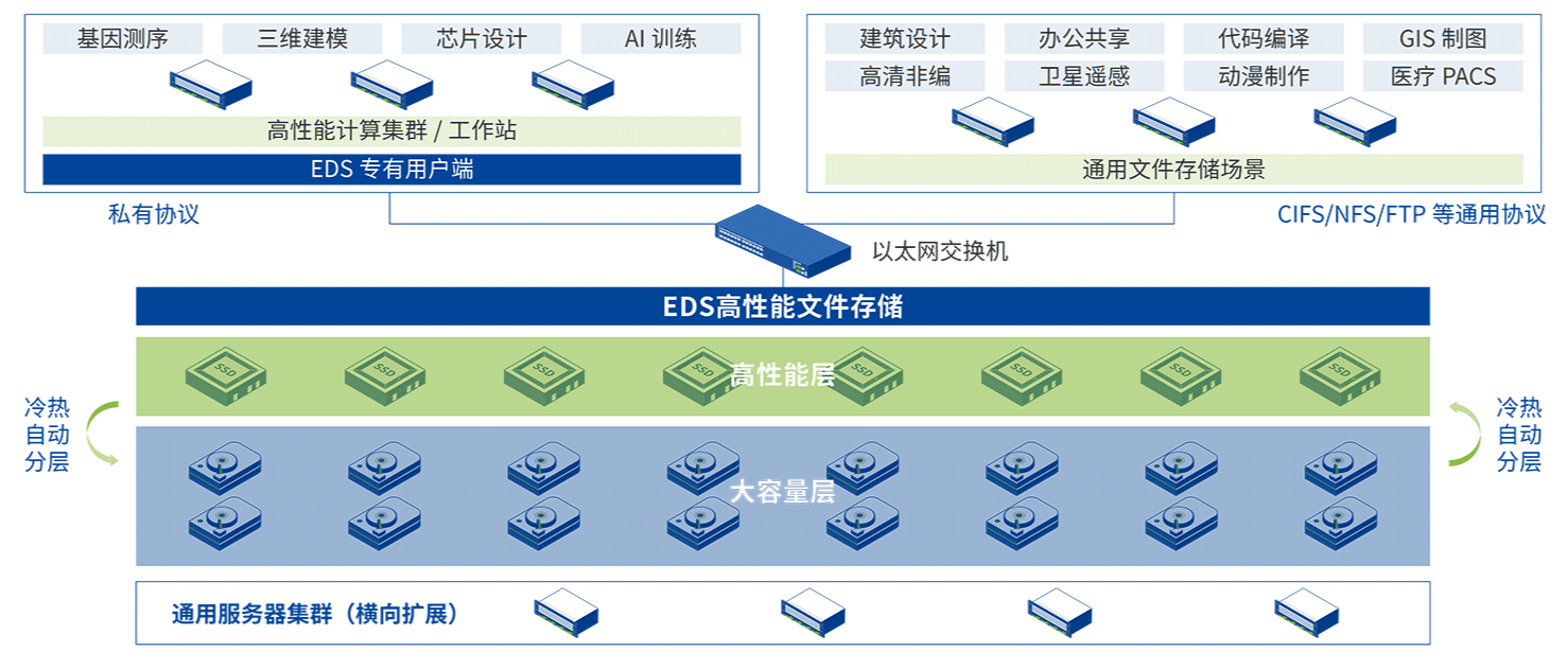 针对存储,我公司可以提供独立的高性能存储,满足企业单位的高性能存储需求,同时也可以提供分布式存储解决方案,其更高的性价比、更高的稳定性、更好的扩展性能够满足用户的多样化存储需求;同时可以根据行业特性提供定制化的解决方案,如医院PACS影像存储采用分布式混合存储,既满足其大容量,也能够满足热点数据的高IO需求。